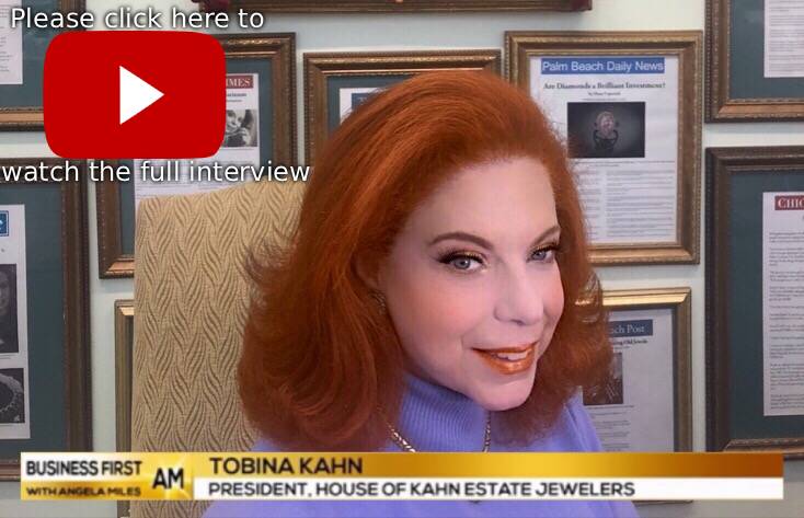 The House of Kahn Estate Jewelers is honored to be featured on Business First AM with host Angela Miles. Business First AM covers all financial news including the topic of Gold and Silver in the discussion below: Tobina Kahn is featured in this interview on the price of metals skyrocketing and offers tips on buying and selling gold & silver jewelry: