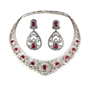 Ruby and Diamond Necklace and Earrings Set