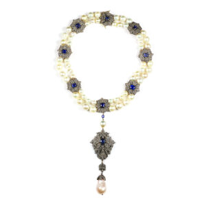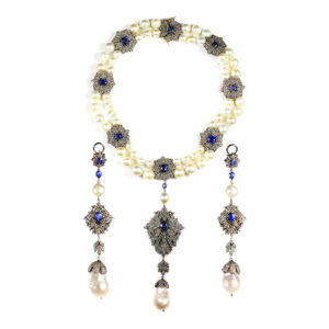 Kyanite, Diamond, and Pearl Necklace & Earrings Suite
