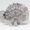 BraceletsPlatinum and Diamond Clip Bracelet. Accompanied by 59.00 carats of fine diamonds and set in platinum. Center diamond ribbon motif also slides off as a separate brooch piece.
