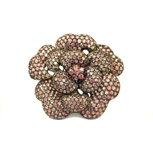 Tags: pink brooch, pink sapphire, pink sapphire brooch, sapphire brooch, silver