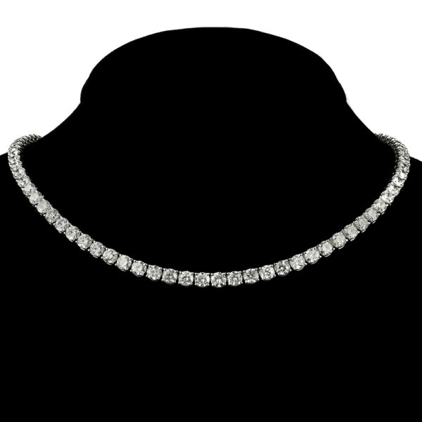 Straight row diamond necklace accompanied with 84 diamonds weighing 28.77 carats set in 18 karat white gold.