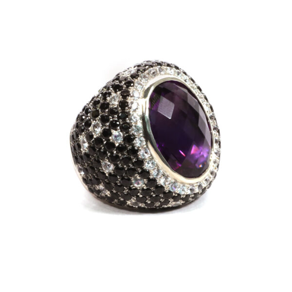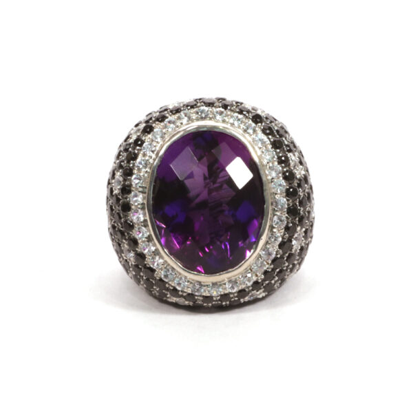 Amethyst Ring with black spinel and 22.50 carats of white sapphires.